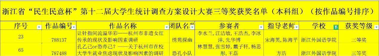 近日,浙江省第十二届“民生民意杯”大学生统计调查方案设计大赛竞赛结果揭晓,马克思主义学院方浩老师指导的作品《孔乙己or恐亦己——关于杭州市在校大学生就业焦虑现状及其影响因素的调查方案》(项目编号:787488;项目负责人:林慧慧)荣获大赛三等奖。