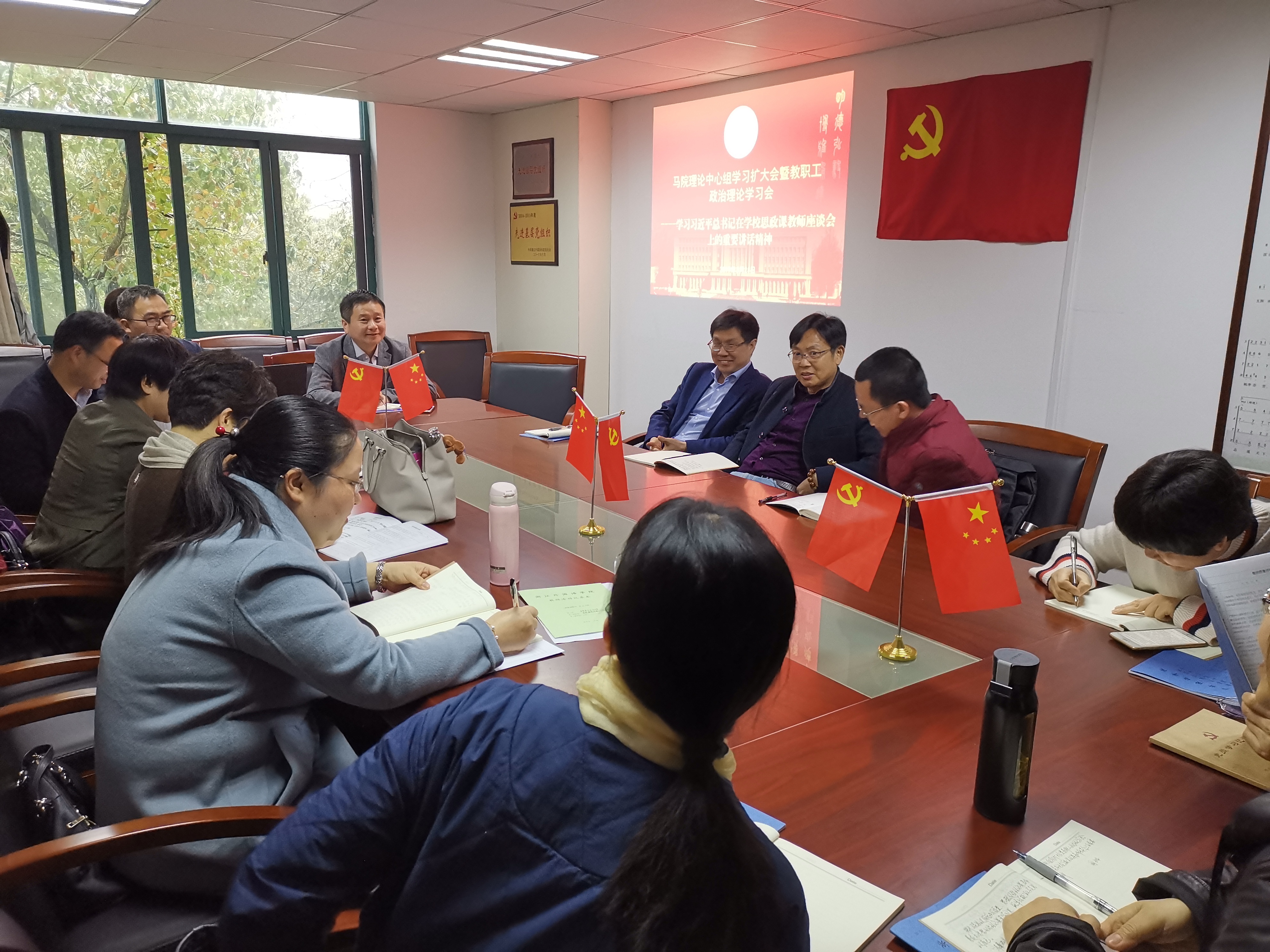 近日,马克思主义学院举行理论中心组学习扩大会暨全体教职工政治理论学习会,专题学习习近平总书记在学校思政课教师座谈会上的重要讲话精神。