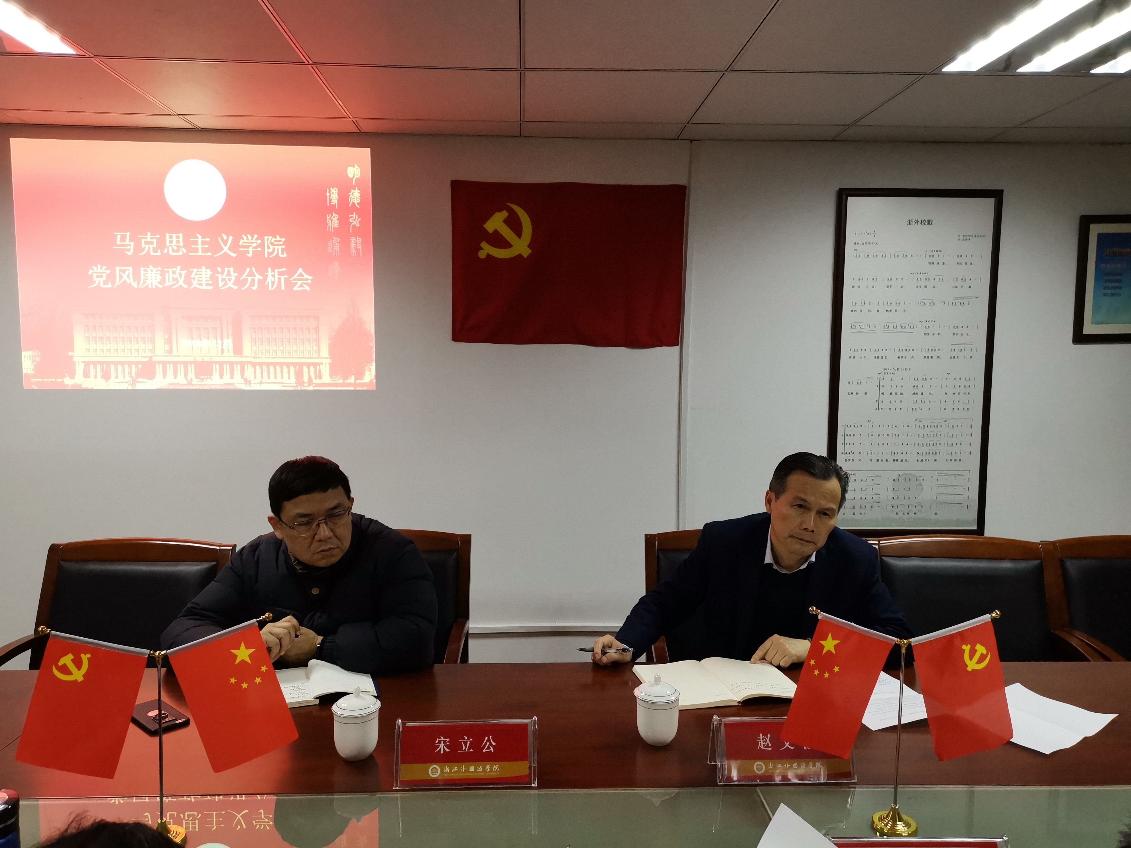 校党委副书记赵文波充分肯定了马院党总支一年以来的党风廉政建设实效,并从“进一步加强学习,完善党风廉政制度;发挥学院优势,加强马院廉政文化建设;严格落实中央八项规定精神;牢牢把握意识形态主导权;强化民主管理”等方面对马院党风廉政建设工作作了分析指导。
