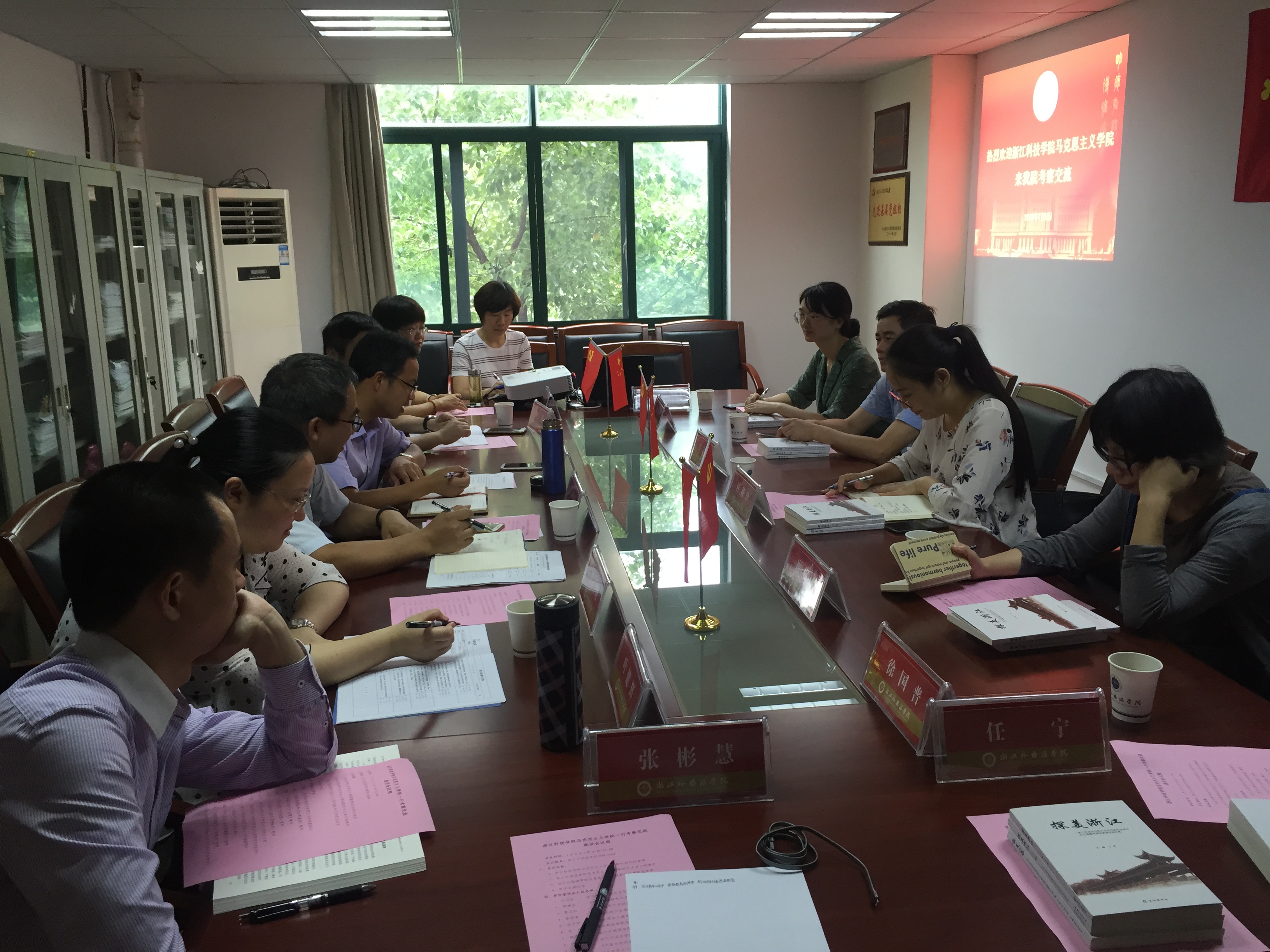 方浩老师首先对浙江科技学院马克思主义学院同仁的到访表示欢迎,从党建工作、师资队伍建设、课程改革、学科科研、社会服务等方面介绍我院概况。周明宝副书记重点介绍了如何发挥党建引领在学院建设中的作用。双方就新教材课程实践教学、教改创新、学科建设、社会服务等方面进行热烈交流,认为“青年学子学青年习近平”是学校思政品牌创新的重要方式。各教研室也就相互关心的课程改革情况进行了相互交流和学习。