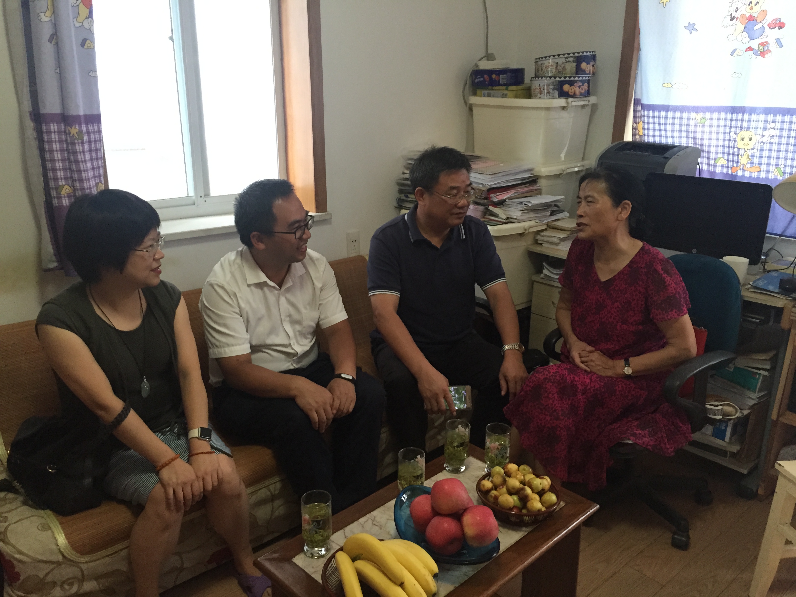 在老教授家中,赵庆荣副校长与朱教授促膝长谈,关切询问他们的生活情况和身体健康状况,感谢她对学校发展作出的突出贡献,并向她介绍了学校“青年学子学青年习近平”学习教育取得的成果,传达了学校本科教育合格评估顺利通过的喜讯,以及人才引进、教学科研等方面取得的成绩,听取了朱教授对学校改革发展的意见、建议,同时希望朱教授把保重身体放在第一位,在此基础上发光发热,继续关心和关注学校的发展建设,也衷心祝愿她身体健康、阖家幸福。