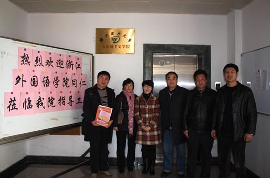 为了提高我校思想政治理论课的教学水平,更好适应学校改制后人才培养模式的转变,3月7日,我校社科部副主任潘迎华教授等一行4人赴浙江理工大学马克思主义学院调研。调研组受到理工大学马克思主义学院院长谭劲松教授及相关老师的热情接待。调研组详细了解了马克思主义学院的学科建设、精品课程建设、实践课程开展等情况,参观了该学院各教学部、教授工作室、图书资料室及研究生实验室等。