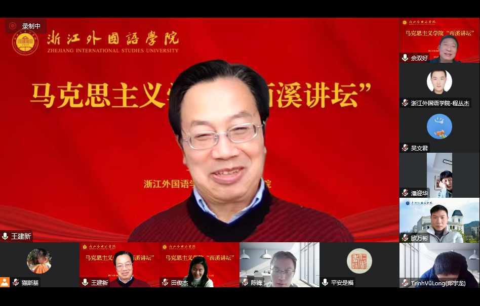 王建新院长对佘双好教授精彩的报告进行了总结。认为是一场思想深刻、学术含量高、启发性强的重要报告,给马院以及广大教师指明了在新时代、新征程中,教师自身发展、学科发展、思想政治理论课教学发展的目标、定位以及建设的路径,同时,深化了我们对马院建设、马学科建设以及思政课建设的新理解,对今后马院的发展具有重要指导意义。