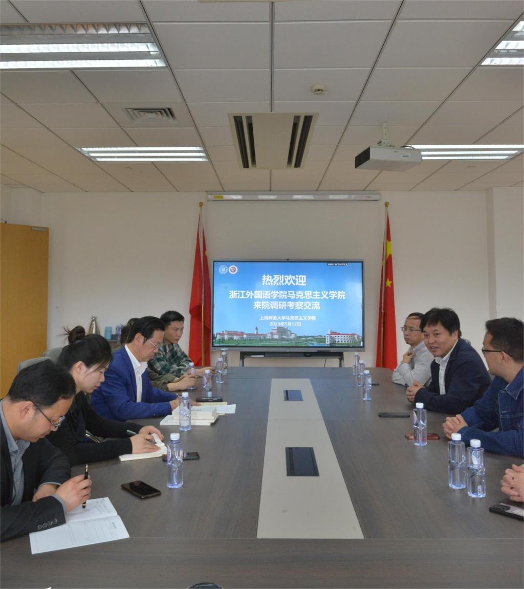他山之石,可以攻玉。学习借鉴省外高校先进经验,更好地助推我校马院建设和思政课建设高质量发展。12日上午,学院一行赴上海师范大学马克思主义学院调研。座谈会上,学院院长王建新教授介绍了我校马院的发展历程与建设情况,上师大马院院长张志丹教授在介绍本院历史沿革的基础上,重点从顶层设计、团队打造、学科建设等多个维度,畅谈了自己对于马院建设的几点思考,双方就如何加强新时代马院建设展开了热烈讨论,并就推动大中小学思政课一体化建设等未来合作议题达成广泛共识。