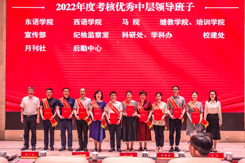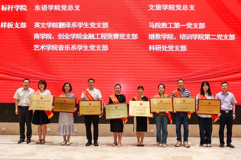 6月30日,在庆祝中国共产党成立102周年之际,浙江外国语学院庆祝中国共产党成立102周年表彰大会暨党建工作会议在同文堂隆重举行。我院优秀个人和先进集体代表参加表彰大会。其中,马院领导班子获评“2022年度考核优秀中层领导班子”,马院党总支荣获“2022年度校五星级党组织(五星级党总支)”荣誉称号,教工第一支部获评“校级党建工作样板支部”,其报送的《实施“三好工程”,履行支部责任》入选校第二批党建工作优秀案例;田俊杰同志获评“2022年度考核优秀中层干部(中层正职)”和校第七届“最受师生喜爱的书记”,方浩同志被评为“2022年度考核优秀中层干部(中层副职)”,欧万彬同志荣获校第八届微型党课大赛二等奖。