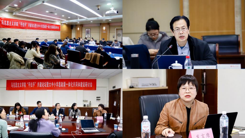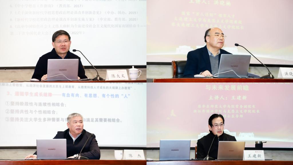 会议邀请国家“万人计划”教学名师、教育部“思想道德与法治”教学指导委员会副主任委员、同济大学教授陈大文,国家“万人计划”领军人才、大连理工大学马克思主义学院教授洪晓楠,浙江工业大学党委副书记、马克思主义学院教授陈杰,我院院长、教授、博士生导师王建新分别围绕“大中小学思政课一体化教学目标定位”“新时代伟大成就是拼出来、干出来、奋斗出来的”“大学生思想政治教育工作如何高质量发展”“新时代马克思主义学院建设基本经验与未来发展前瞻”作主题报告。