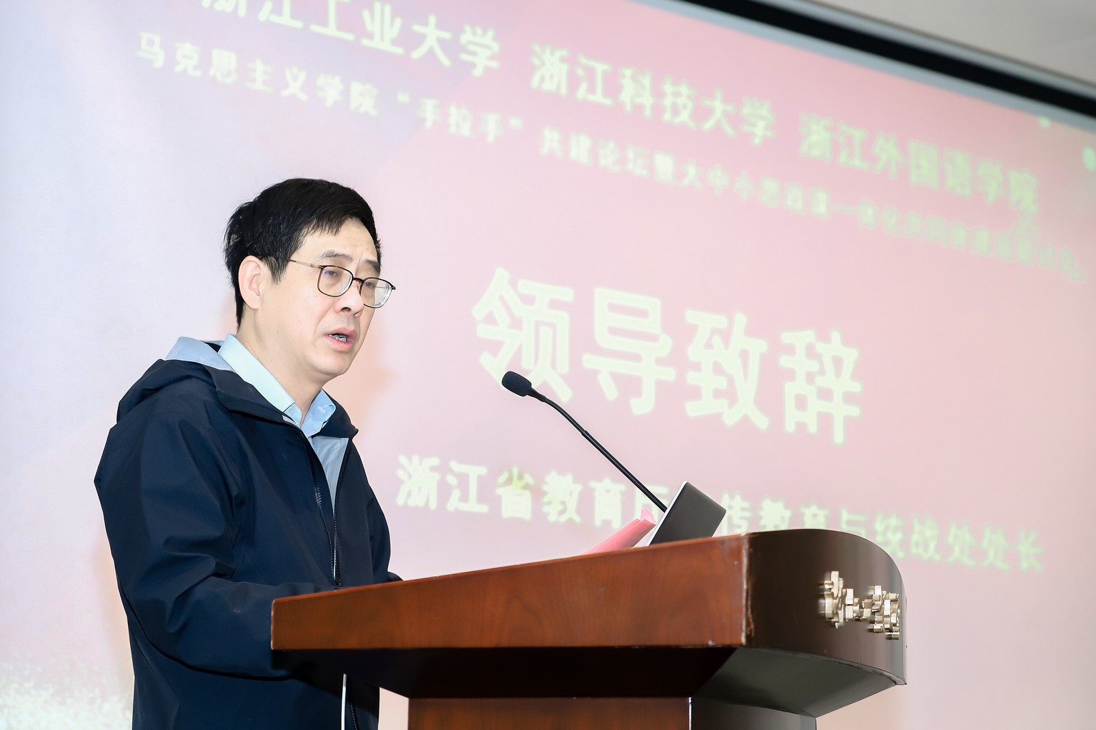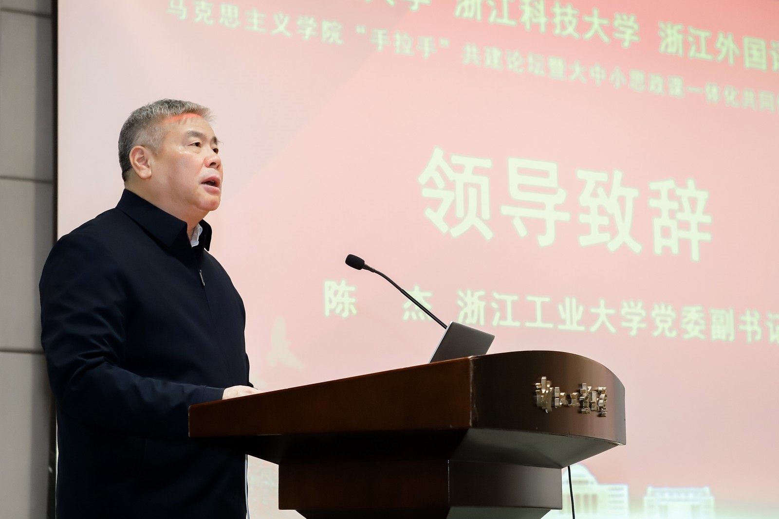 陈杰代表浙江工业大学致辞。他表示,思政课一体化建设既要打破学段隔离,做好四个学段之间的衔接与进阶工作,又要使各个学段的思政课都守好一段“渠”种好“责任田”,做到阶段性目标统一于立德树人的总体目标,希望未来三方院校扎实推进马克思主义学院“手拉手”共建联盟建设,期待更多的在杭各学段学校加入联盟,将共建联盟打造成浙江省乃至华东地区大中小学思政课一体化建设研究的新高地。