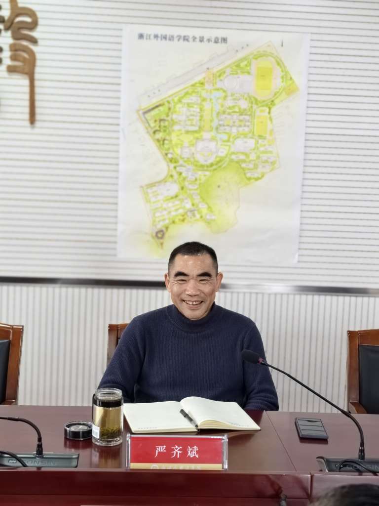 严齐斌认真听取了学院汇报,充分肯定了马院在学院建设、人才引进、思政课改革方面做出的努力。他指出,马院作为承担立德树人根本任务的重要阵地,要坚持“以学生为中心”,推进以提升学生获得感为导向的大思政课教学改革,要把思政课与时代背景、浙外特色相结合,真正把思政课讲到学生的心里。同时还就如何开门办马院,开门办思政课,推进学院教师队伍建设进行了指导。