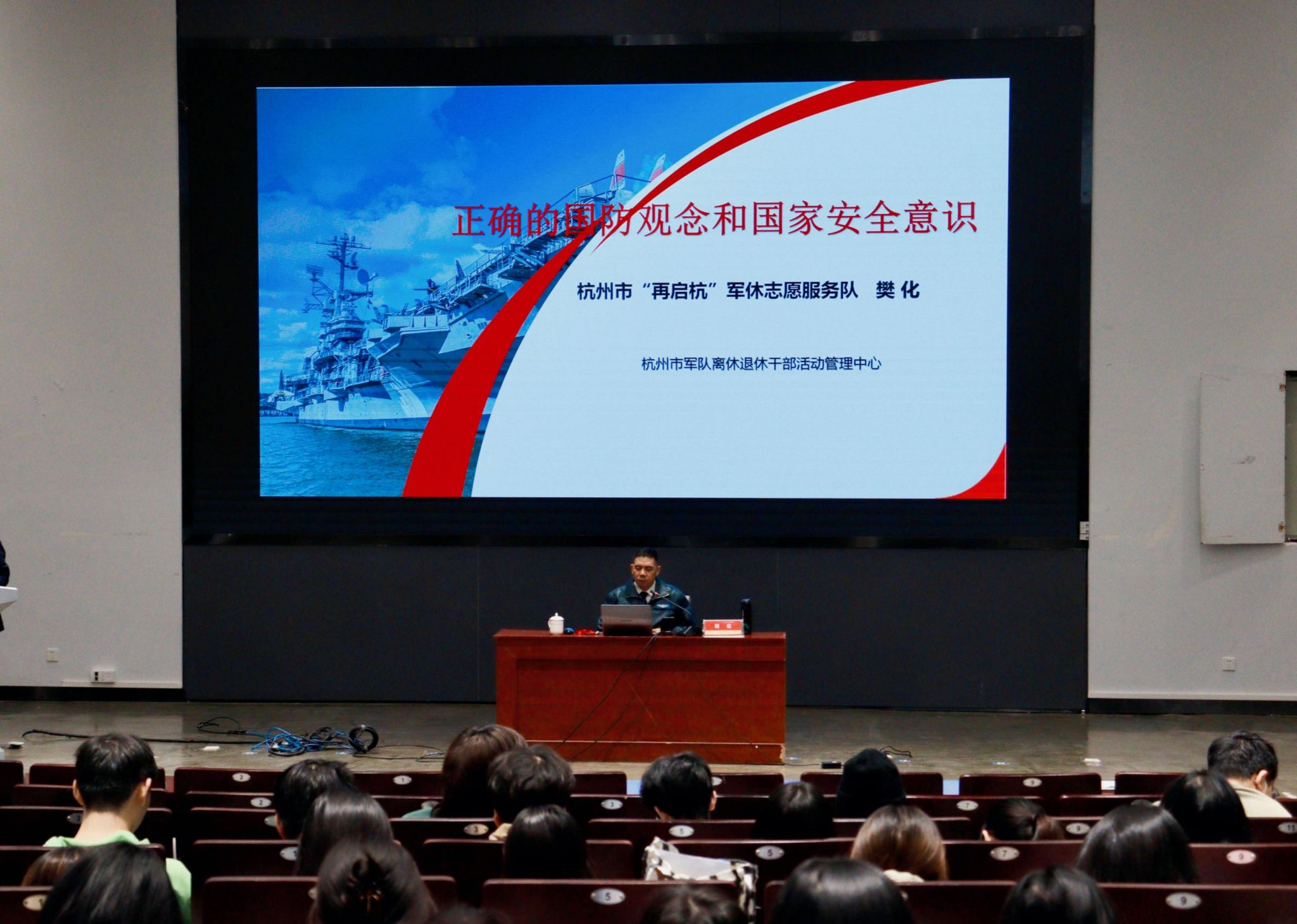 为进一步拓展学生视野,提高学生国防意识,联动一二三四课堂,2024年12月4日,马院邀请了杭州市军休活动管理中心“再启杭”军休志愿服务队——“红动钱潮”宣讲队成员樊化在望院C116为学生现场授课。