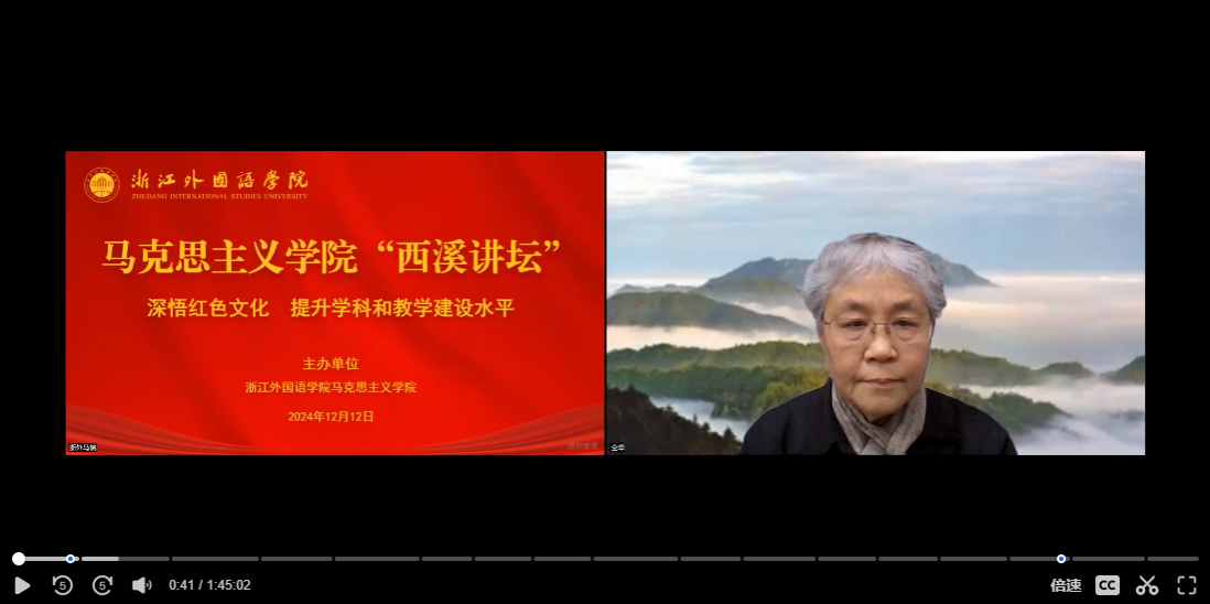 12月12日,马克思主义学院举办“西溪讲坛”第七场讲座。此次特邀教育部高等学校思想政治理论课教学指导咨询委员会委员、中央马克思主义理论研究和建设工程《中国近现代史纲要》教材编写组主要成员、原北京大学马克思主义学院副院长、博士生导师仝华教授作题为“深悟红色文化,提升学科和教学建设水平”的主旨报告。本期“西溪讲坛”由院长王建新教授主持。