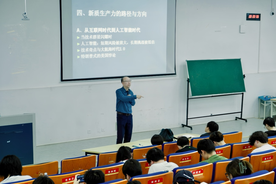 为深入贯彻党的二十届三中全会精神,守正创新推动高校思政课内涵式发展,4月10日晚,马克思主义学院特邀资深财经作家、新华社高级记者胡宏伟,为三百余名学生带来一场主题为“改革史坐标上的浙江经济与高质量发展”的精彩教学讲座。讲座现场气氛热烈,座无虚席。