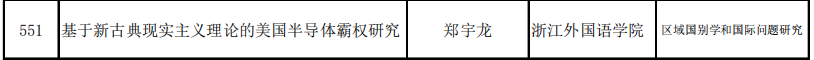 近日,全国哲学社会科学工作办公室正式公布2025年国家社科基金中华学术外译项目与后期资助项目拟立项名单。其中,马克思主义学院青年教师郑宇龙的《基于新古典现实主义理论的美国半导体霸权研究》成功立项。