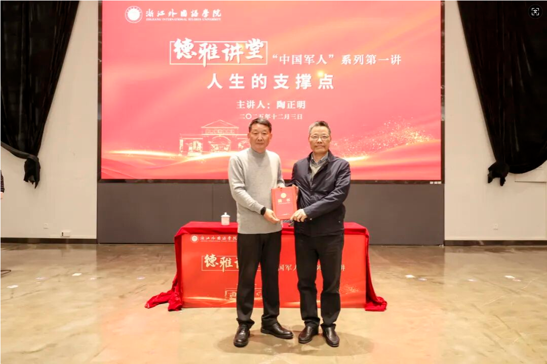 12月3日下午,望院C116报告厅内气氛热烈。原江西省委常委、原江西省军区政委陶正明少将做客“新时代真理的味道”德雅讲堂“中国军人”系列第一讲,为我校师生作题为“人生的支撑点”的主题讲座。