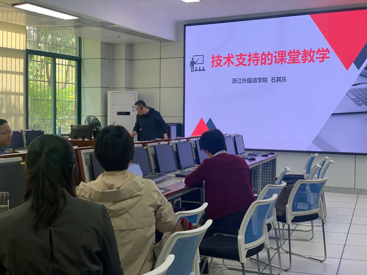 为进一步推进课堂教学改革,提升教师教学能力,马院将开展教学技能提升系列活动。为进一步推进现代教育技术手段在教学中的应用,提升高校教师信息技术应用能力在课堂教学中的辅助作用,4月7日下午,马院邀请国际商学院计算机系石其乐副教授作题为“技术支持的课堂教学”的专题讲座。此次活动系马克思主义学院主办的“教师教学能力提升”系列讲座之一。讲座由副院长方浩主持,全校40余位教师参加此次培训。