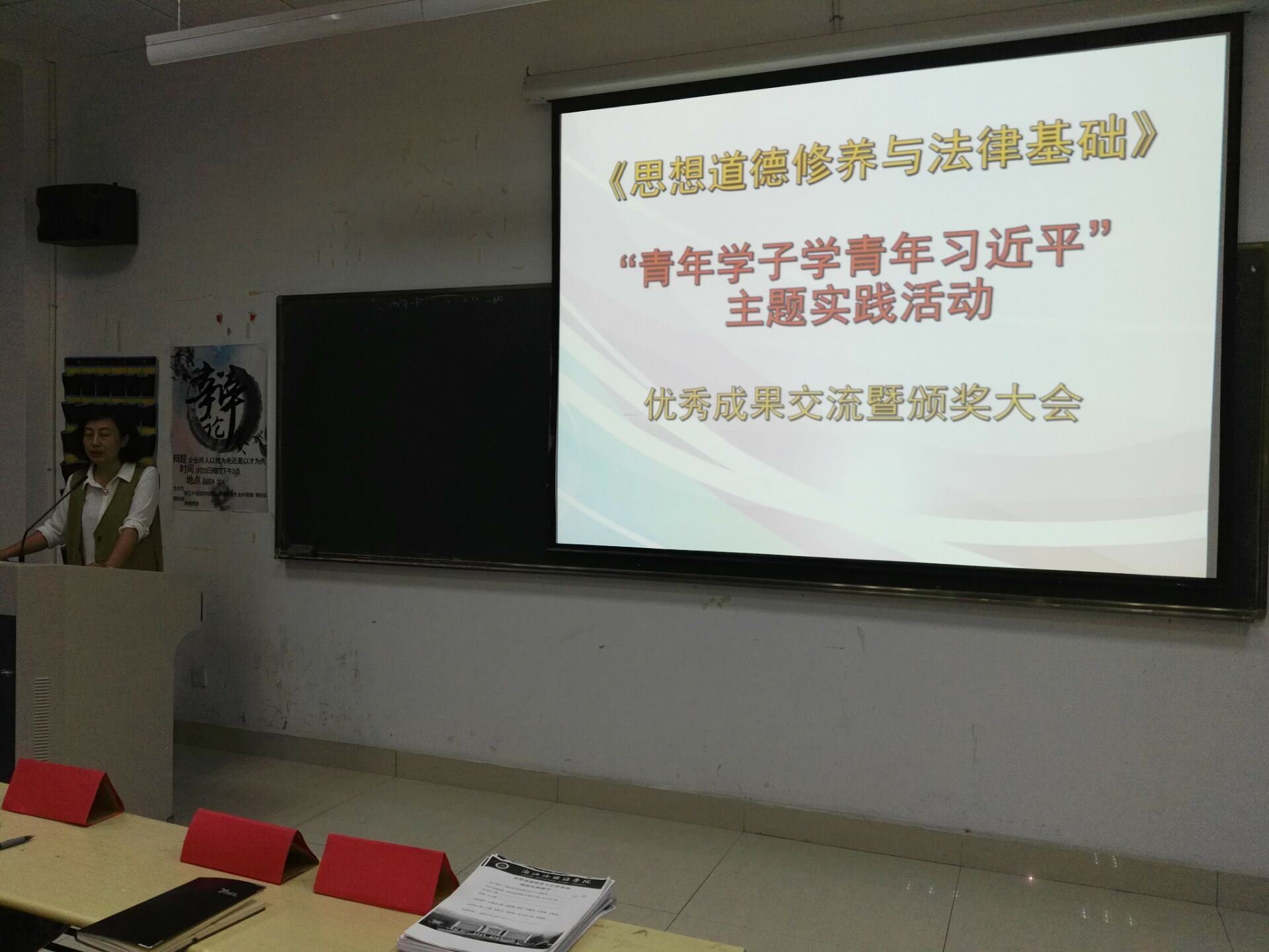 4月18晚,在品院A504教室,社科部《思想道德修养与法律基础》课程组举行“青年学子学青年习近平”主题实践活动优秀成果交流暨颁奖大会。会议由《思想道德修养与法律基础》教研室主任兰小平老师主持,宣传部徐勇部长、社科部潘迎华主任、宣传部门、各教研室老师和部分学生代表共100余人参会.