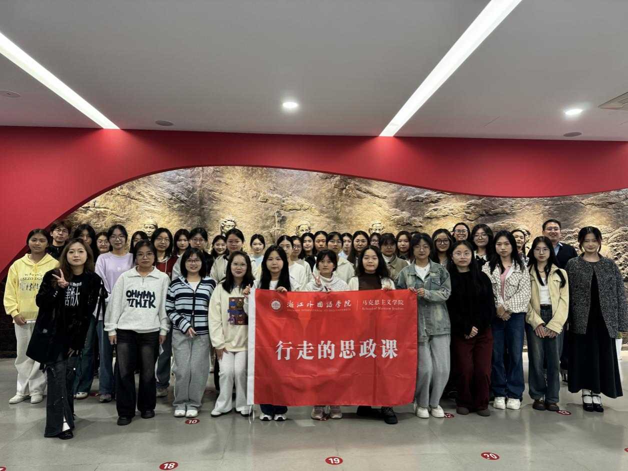 习近平总书记在全国教育大会上强调:“注重运用新时代伟大变革成功案例,充分发挥红色资源育人功能,不断拓展实践育人和网络育人的空间和阵地。”为深入学习贯彻习近平总书记关于学校思政课建设的重要指示精神,用好用活浙江红色文化资源,提升思政课铸魂育人实效,2024年10月28日下午,马克思主义学院葛俊良老师组织“毛泽东思想和中国特色社会主义理论体系概论”课程部分学生,前往杭州青年运动史馆开展了“行走的思政课”实践教学活动。