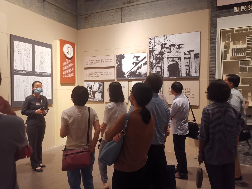 在纪念馆的二楼、三楼,党员们在讲解员的生动讲述中,参观学习了纪念馆基本陈列《浩然正气垂青史——浙江著名烈士事迹展览》。一幅幅图片,一段段视频,一件件实物,立体展现了半个多世纪以来,浙江人民在中国共产党的领导下,为实现新民主主义革命和社会主义事业的胜利,进行艰苦卓绝的斗争场景,真实再现了无数革命烈士当年的工作、生活、战斗情况。早期党员骨干在浙江陆军监狱里坚持学习、抗争的革命乐观主义精神给大家留下了深刻的印象。