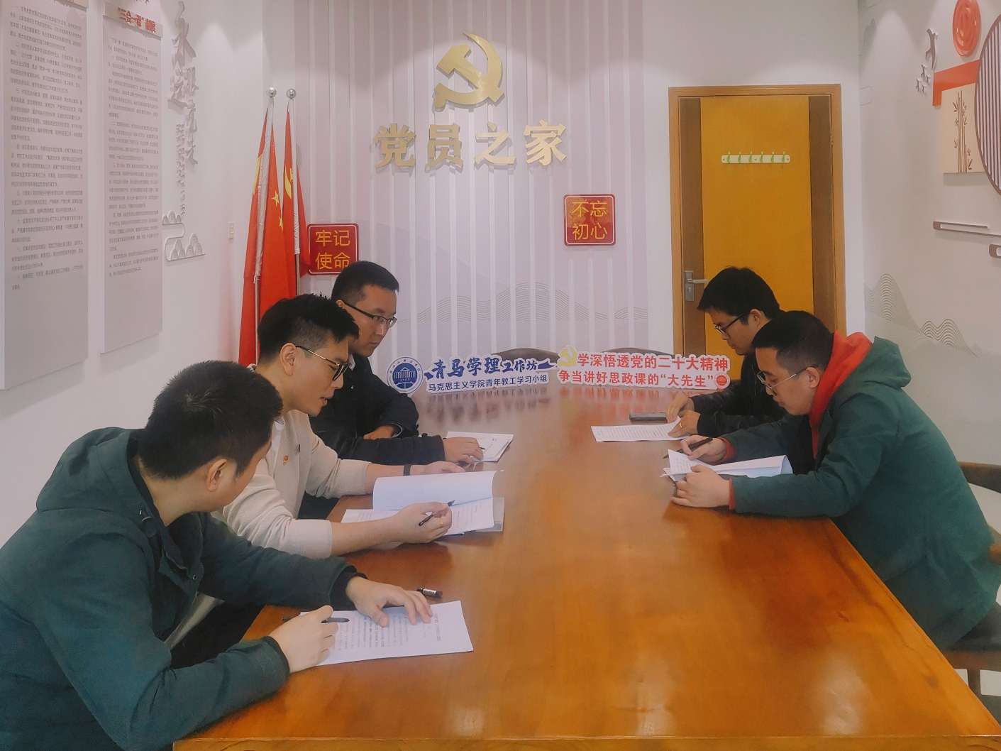 10 月 19 日下午,浙江外国语学院马克思主义学院青年教工学习小组(青马学理工作坊)在望 A407 会议室开展了以“学深悟透党的二十大精神争当讲好思政课的‘大先生’”为主题的专题学习,并对青年教工积极主动融入学校党委宣传部即将组织开展的“在浙江·知中国”——党的二十大精神宣讲活动作了动员。青年教工学习小组全体成员参加会议并依次作交流发言。