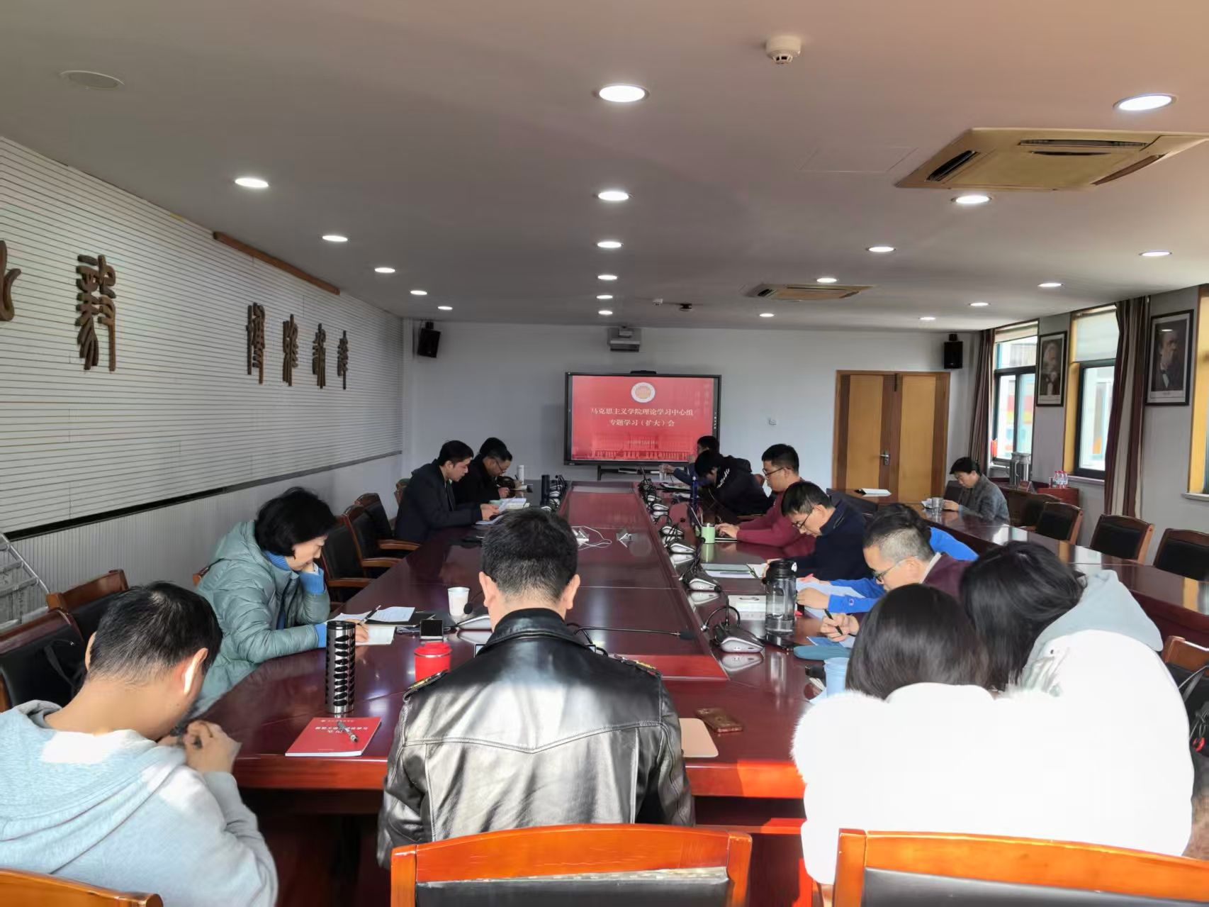 12月18日,马克思主义学院理论学习中心组举行专题学习(扩大)会,学习习近平法治思想、浙江省委十五届八次全会精神。会议由党总支书记毛立峰主持,学院理论中心组成员、全体党员教师参加。