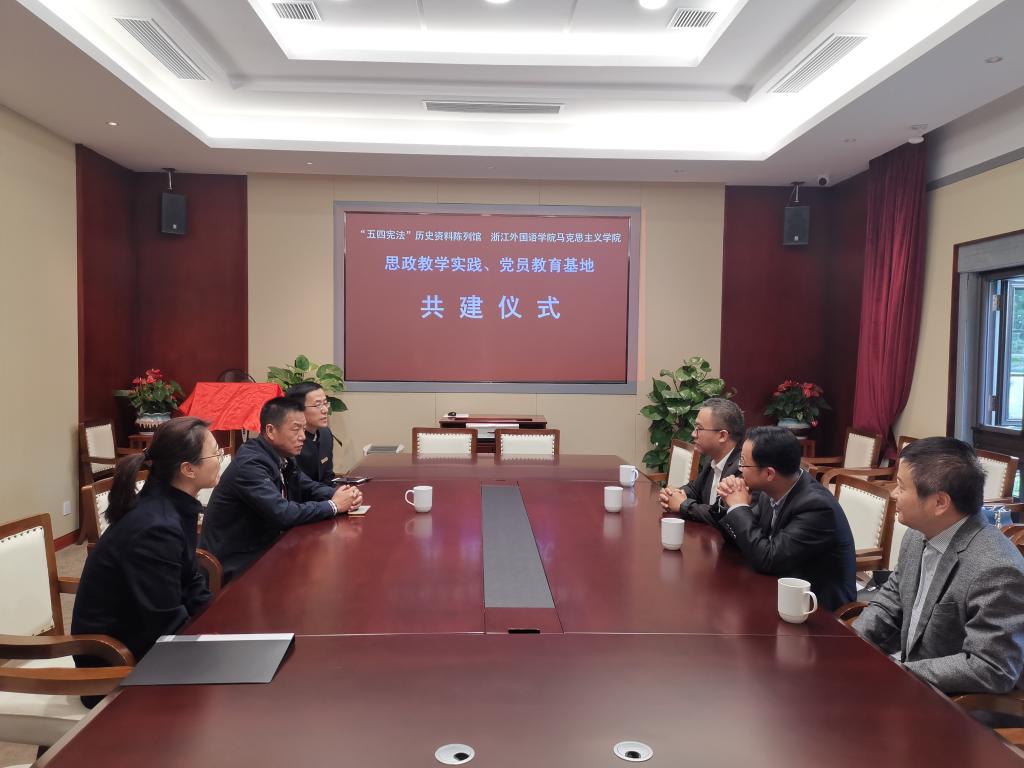 陈列馆魏凌俊书记表示,希望通过院馆共建,为广大群众提供高质量、高水平的宪法文化宣传服务,为讲好中国宪法故事、全面推进依法治国及法治浙江、法治杭州的建设作出一份贡献;馆方热切欢迎浙外师生提供国际志愿服务,开展教学实践、党员教育和理论宣教等各种教育活动。